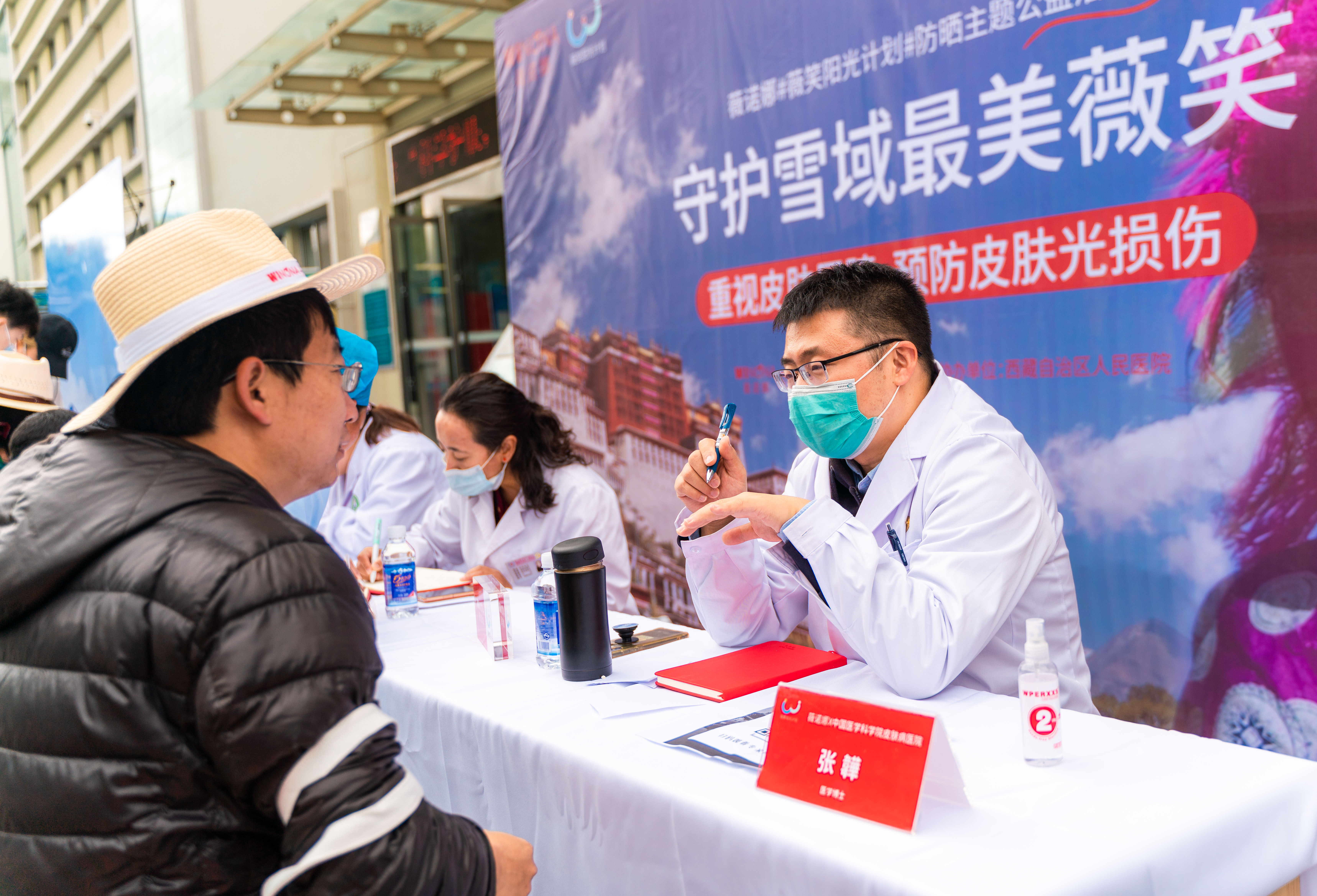 对于藏民来说,认识问题才能解决问题。为了帮助藏民提高防晒意识,薇诺娜联合西藏自治区人民医院皮肤科专家在院内开展大型一对一免费皮肤问题咨询活动,解答肌肤问题困扰,为藏民提供专业指导建议。